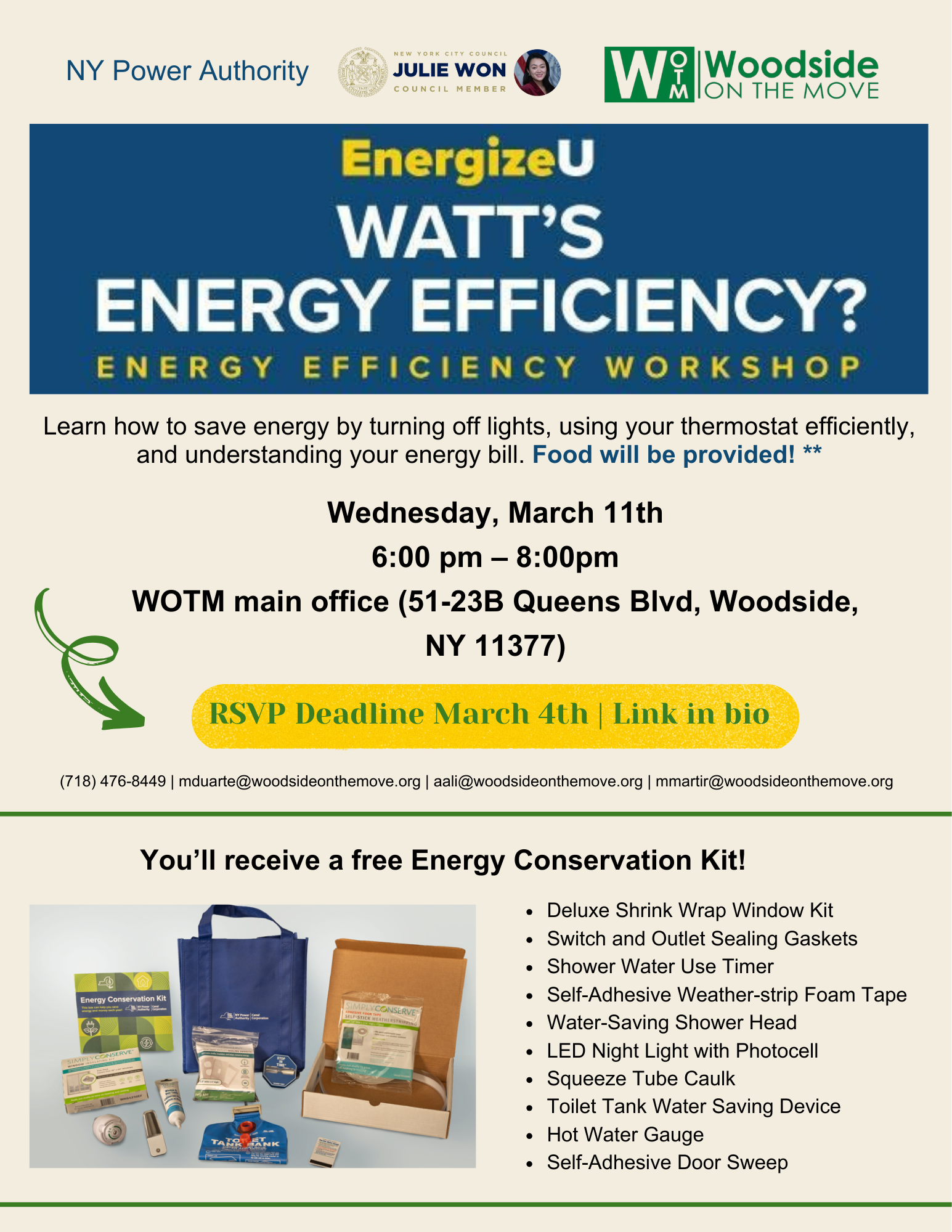 Come for community, enjoy some food, and leave with a free energy-saving kit ⚡💡 This workshop is perfect for renters, seniors, and anyone looking to save energy and lower their utility bills.