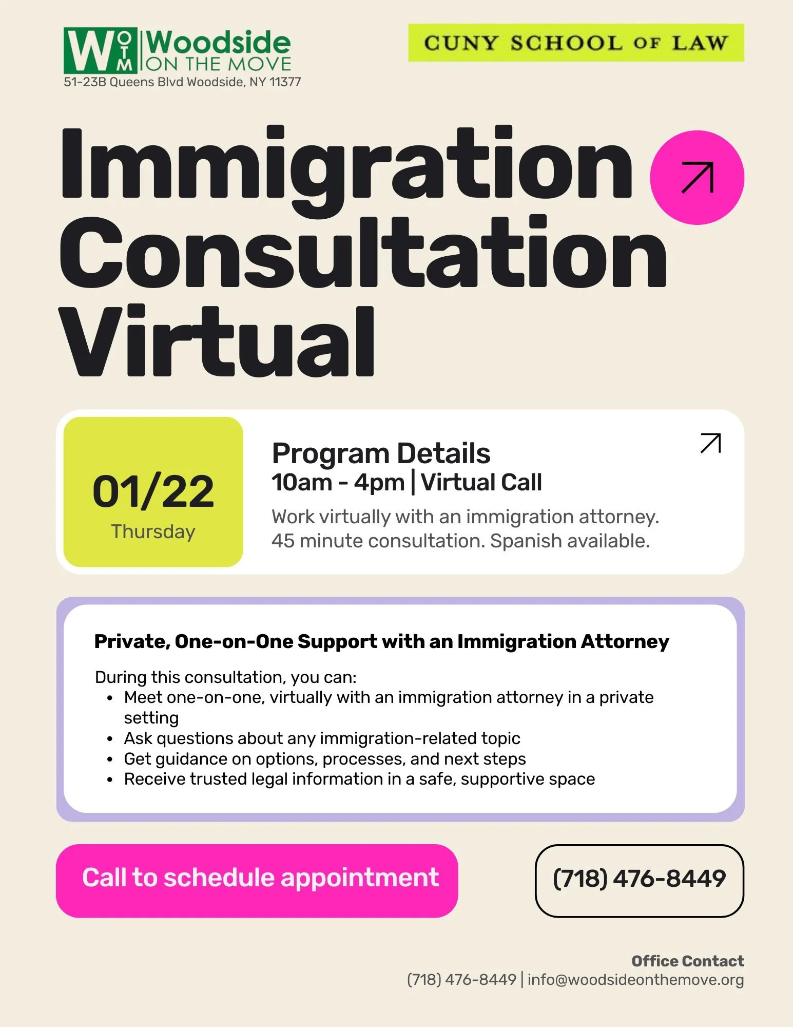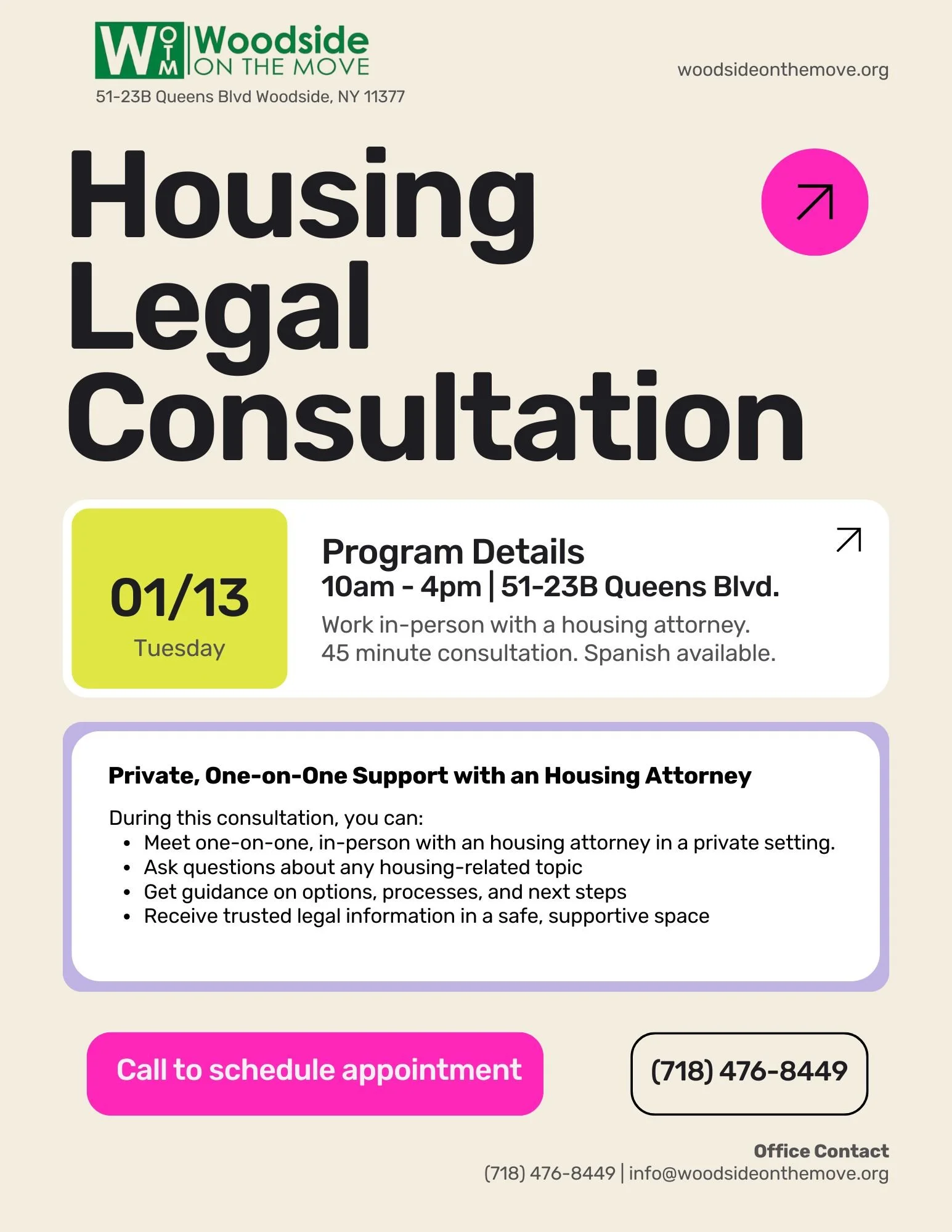 By Appointment Only: Call (718) 476-8449 or email info@woodsideonthemove.org