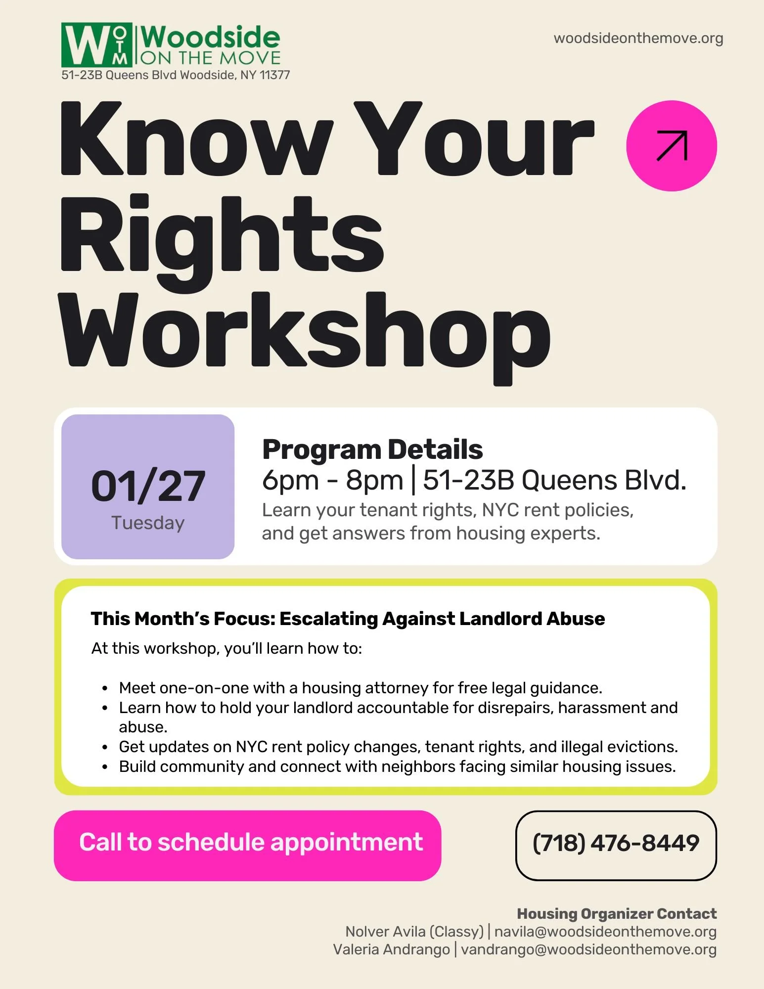 ContΓ‘ctanos en (718) 476-8449 or info@woodsideonthemove.org